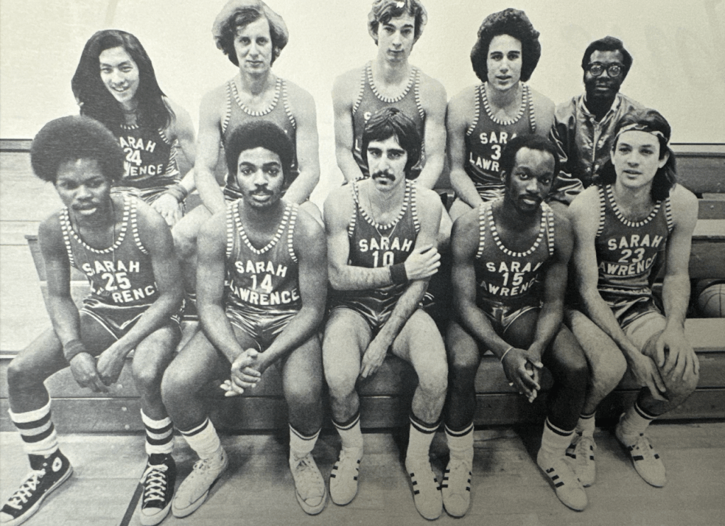 Sarah Lawrence started up their first athletic team the year the school went co-ed, in 1969. Before we had Campbell, the “gym” was in Bates, which was only a humble room with a few dumbbells that was primarily used for yoga and tai chi classes. A couple students gathered there to play 3v3 basketball games, and soon after the Sarah Lawrence Men’s Basketball team was born. It consisted of a 26 year old Vietnam Vet, a sculptor, a modern dance major, and a couple other male students who had no prior experience with basketball. The team was made up of mostly black students, and the team was coached by two middle aged women – Marguerite Shaw and Patty Smyth. Shaw and Smyth lived nearby on Highland Circle, and laundered all of the boys’ uniforms in their home. I couldn’t find anything about their relationship status, but they did share a house and I think “roommate” in any historical piece of anything has become euphemistic to “homosexual.” In a newspaper interview, they describe themselves as “wet nurses”, providing towels and band-aids to the team. Shaw and Smyth also kept the team supplied with beer, cookies, and oranges to enjoy during half-time. The basketball team had several nicknames, including “Green Terror” and “the Wild Bunch.” The Wild Bunch saw a successful debut, crushing both Connecticut College (which had also recently converted to co-ed) and Vassar. I tried to find as many past basketball players to add in a fun Where Are They Now section, but all of their names were pretty common so I couldn’t dig up as much as I could. I found out that one alumnus became a Romanian Politician. Another guy, Uri Berliner, was in charge of NPR for 25 years. When going through all the newspaper clippings, I noticed that a number of the articles mentioned that this new world of Sarah Lawrence Athletics created space for “kids who read Kerouac and Ginsberg, but still have a jump shot.” How has this changed? I feel like it has definitely changed quite a bit. When I look at our athletes today I fail to believe that one of them has read any book at all, Kerouac and Ginsberg aside. No doubt, Sarah Lawrence is still chock-full of post-Beatnik literary posers, only none of them are male– that I know of, anyway. And when they are male, from my observations, their testosterone levels are a tad too low for a jump shot. There’s sometimes enough for an impish leap, when they’re not fried out of their minds. Maybe I am the problem. But I genuinely don’t see any of these guys as the bookish type, and I don’t think I’m wrong. This is where my primary sources come in.